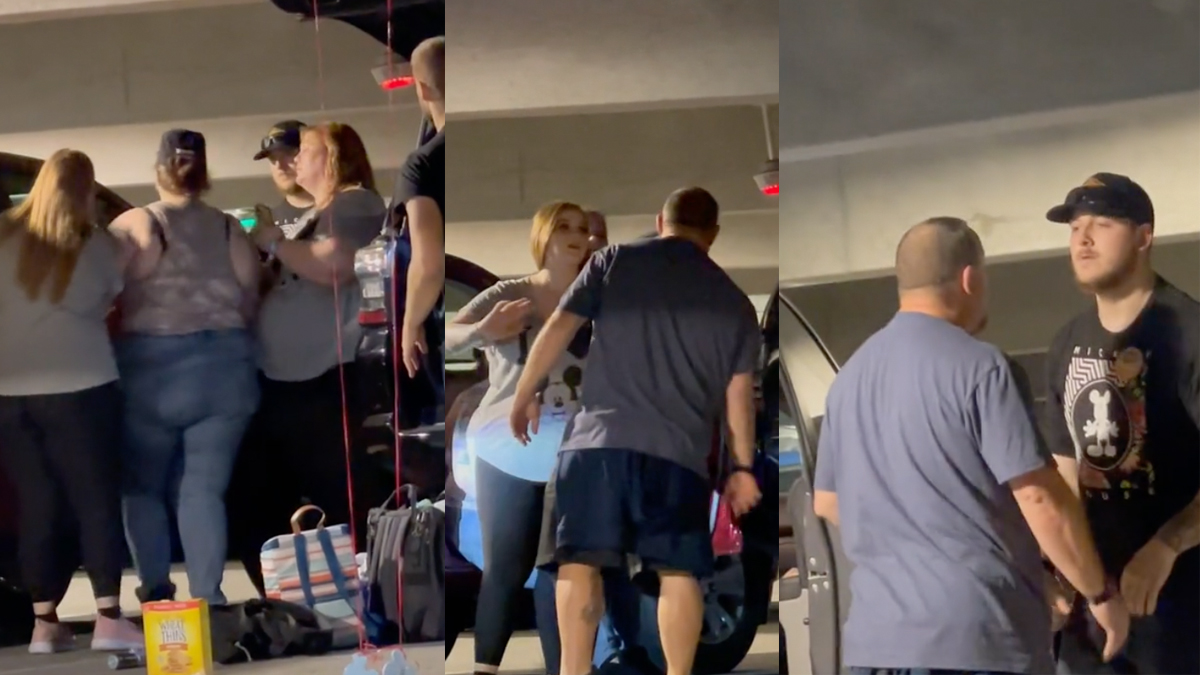 A fight involving members of one family in a Disneyland Resort parking structure was caught on camera and posted on TikTok.