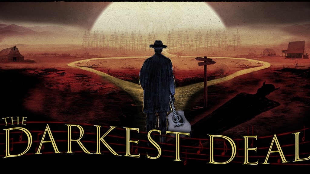 In the Mississippi Delta, blues musician Pinestraw Spruce meets at a crossroads with a diabolical entity known as The Collector to make a deal: his soul for musical glory. Guests will witness his big break performing for a crowd before The Collector drags him to Hades with the other musicians who learned the terrible price of fame in The Darkest Deal.
