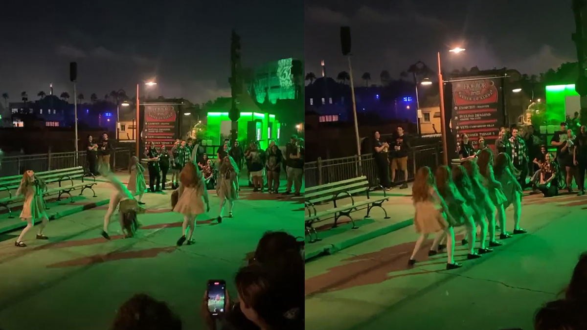 Watch the unannounced roaming M3GAN horde dance during the Team Member preview of Halloween Horror Nights 32 at Universal Studios Florida in the video below.