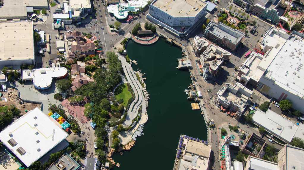 - Image #6,#7: Aerial photos of the Universal Studios Lagoon. A show is in development, and many interesting buoys or floats have been positioned.