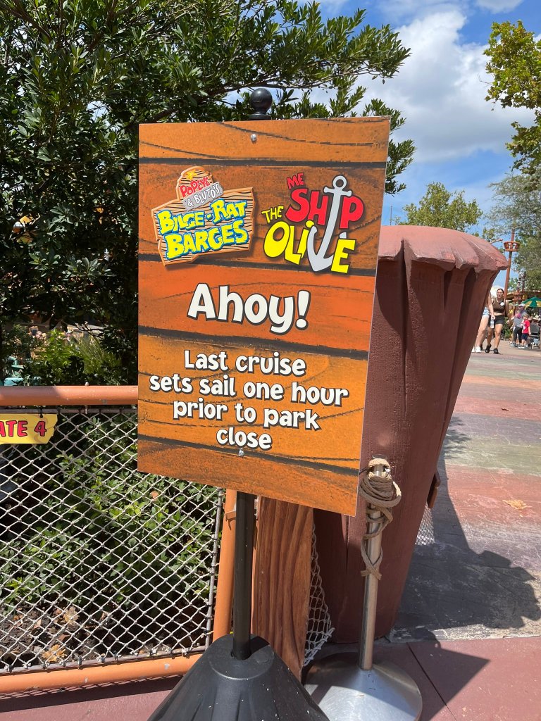 At this time, it’s unclear why Popeye & Bluto’s Bilge-Rat Barges will be closing an hour before Islands of Adventure does. Stay tuned for possible updates.