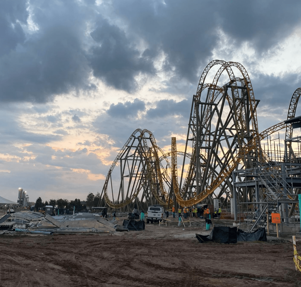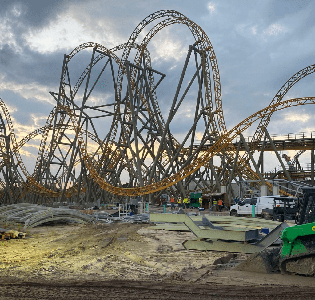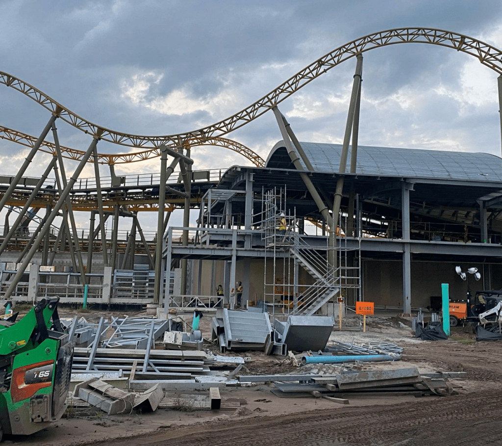 A guest ThemeParx user posted eight onsite photos of the high-speed dual-racing roller coaster currently under construction at Universal’s Epic Universe earlier this month.
