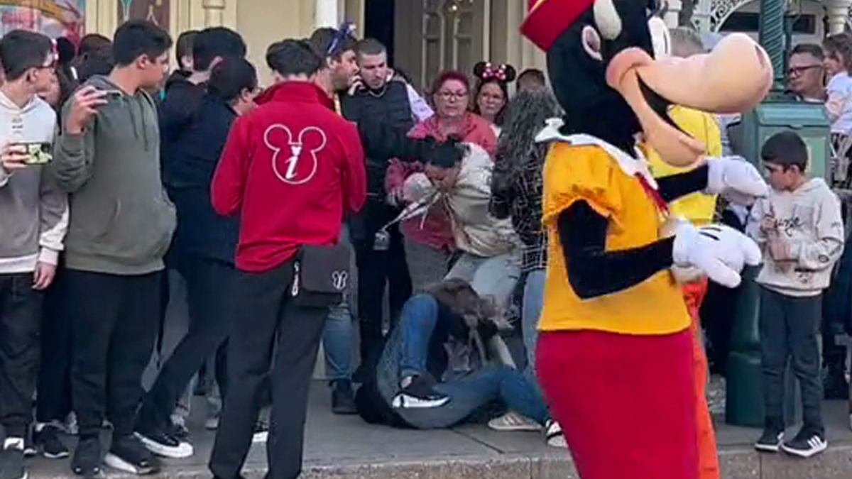 As you can see in the above video, a woman sitting on the ground appears to be kicked while others push and shove each other. Cast Members were made aware of the altercation by a costumed character.