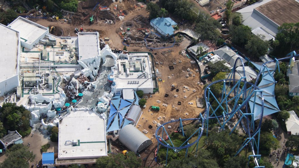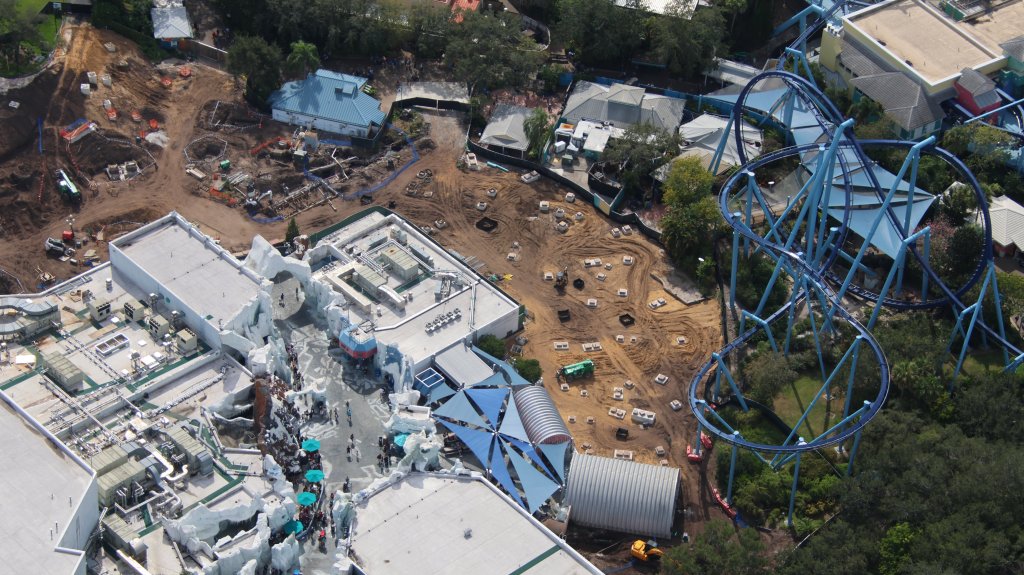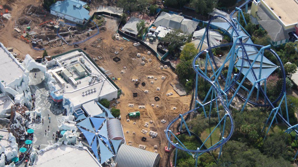 - Image #4, #5, #6: 3 aerial photos of the site of SWO’s new PT roller coaster. Part of the Antarctica section of the park.