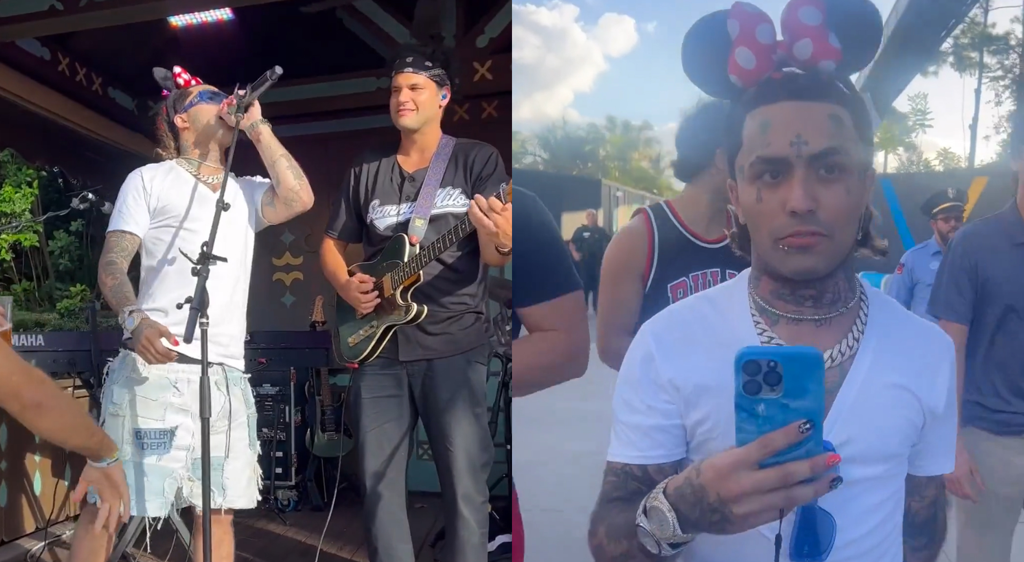 “Please, guys, do not climb onto the stage,” another Sammy Milo band member said. The video then cuts to the guests being escorted out of EPCOT.