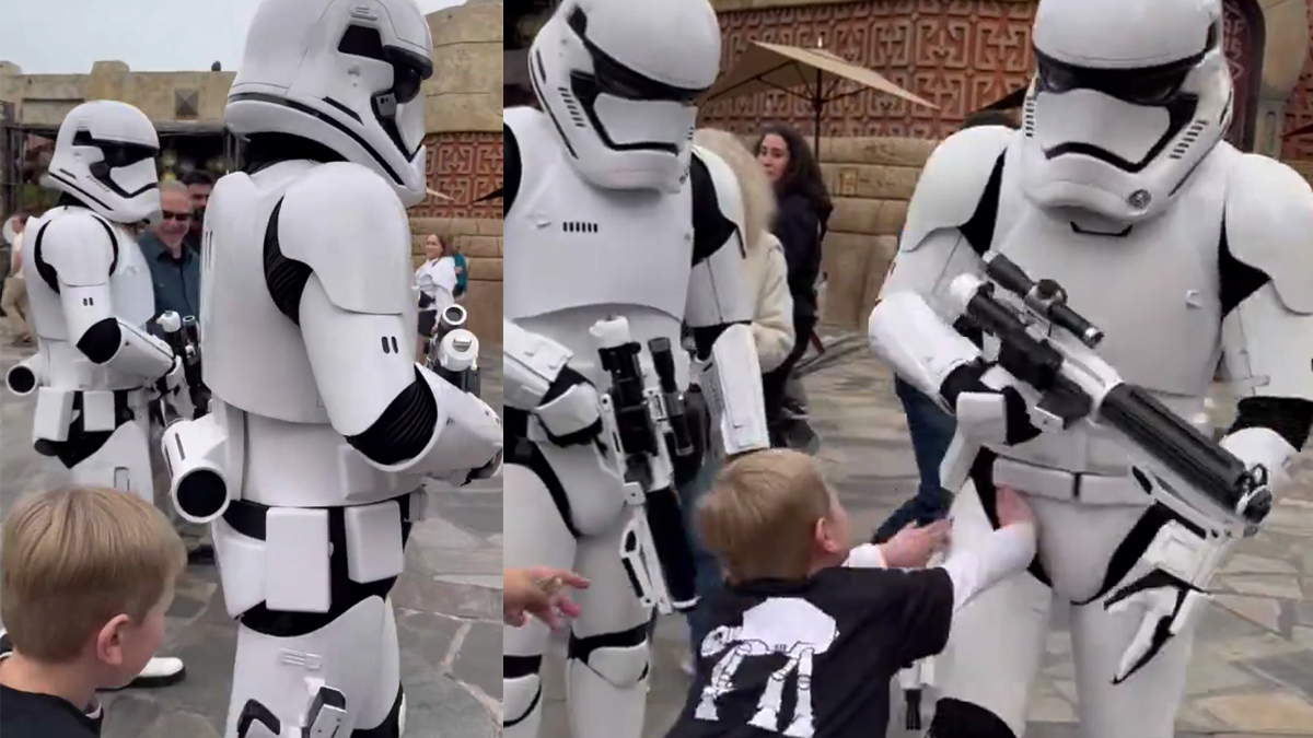 Watch the moment a child pushes a stormtrooper character in Star Wars: Galaxy’s Edge at Disney’s Hollywood Studios in the video below.