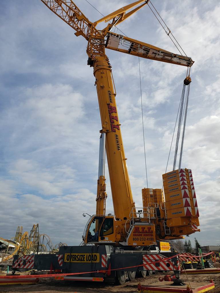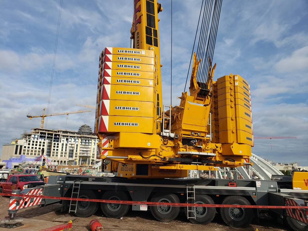 We love covering Epic Universe! A guest ThemeParx user posted four photos of a crane working at Universal’s Epic Universe earlier today.