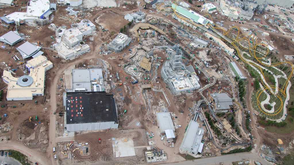- Image #9: Aerial overview of Dark Universe construction in Epic Universe.