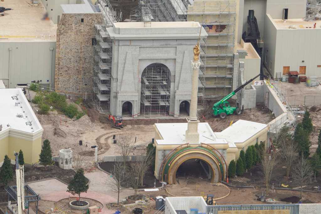 - Image #13: Aerial look at section of the Harry Potter related land in Epic Universe. Scaffolding recently removed both sides of this street.