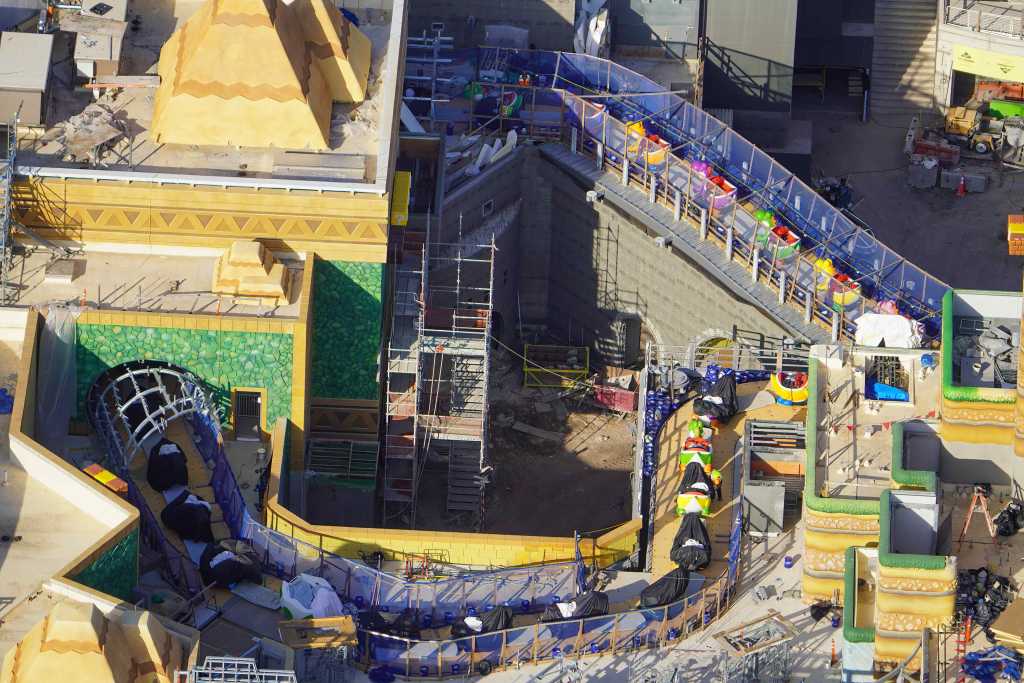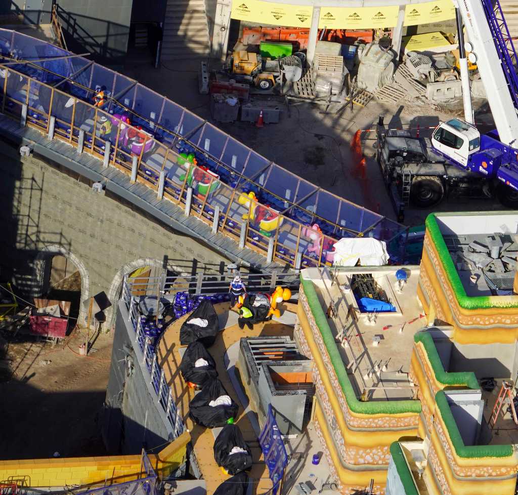 Approximately one hour ago, X user @bioreconstruct posted an aerial photo which shows uncovered Yoshi’s Adventure ride vehicles on the track in Super Nintendo World at Universal’s Epic Universe.