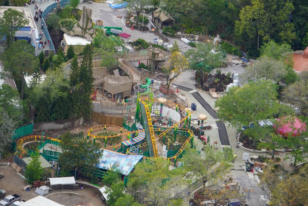 - Image #6: Aerial look at current landscaping separating Shrek’s Swamp for Little Ogres from the E.T. ride entrance.