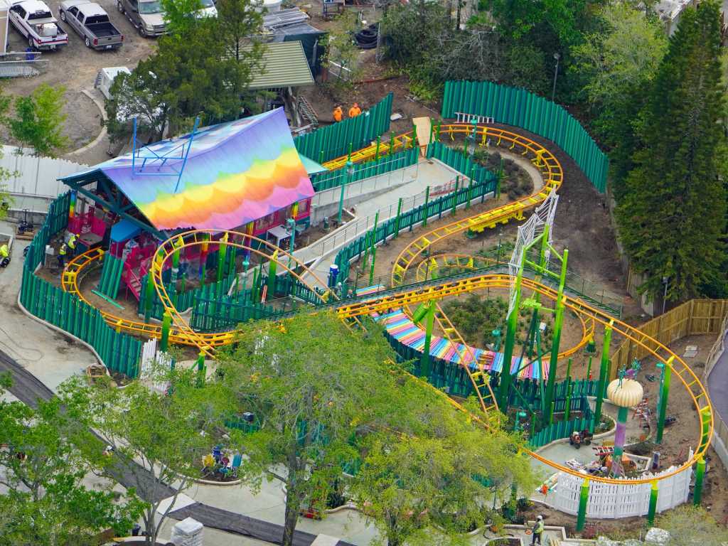 - Image #14: Aerial photo of Trollercoaster in DWL. The semicircular roofed section of queue was recently painted [multicoloured].