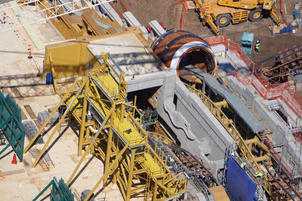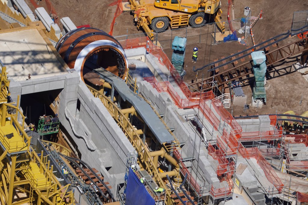 Approximately one hour ago, X user @bioreconstruct posted a number of new and detailed aerial photos of the recently installed barrel on the top part of the lift hill on the Donkey Kong roller coaster (DKRC) at Universal’s Epic Universe.