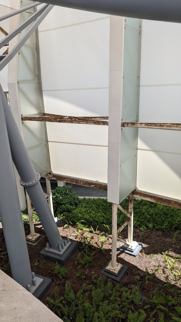 As you can see in the above photos, an unknown brown-coloured substance has stained a portion of the grid that makes the year-old attraction’s canopy. Whilst we believe its rust, @B_Kling is “pretty sure it’s mold.”