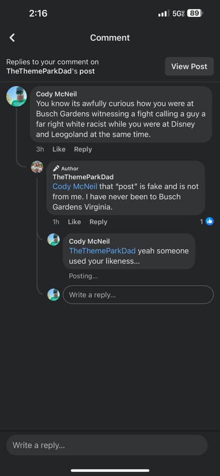 Please disregard the below statement as it has been brought to our attention that someone has used TheThemeParkDad’s photo in order to post a statement.