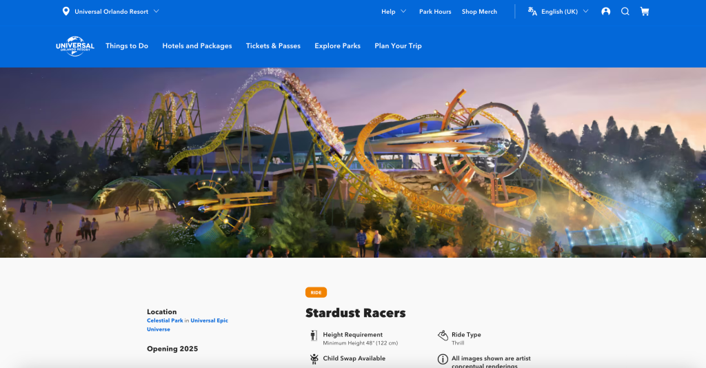 According to an X post by Orlando theme park enthusiast Scott Walker, the name of Starfall Racers at Universal’s Epic Universe has changed name to Stardust Racers. You can read Walker’s post below: