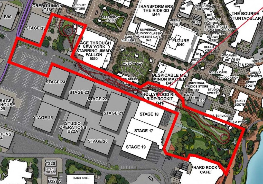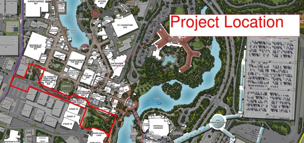 Universal Orlando has filed a permit for the removal and replacement of Hollywood Rip Ride Rockit at Universal Studios Florida. The map below shows the location of the project: