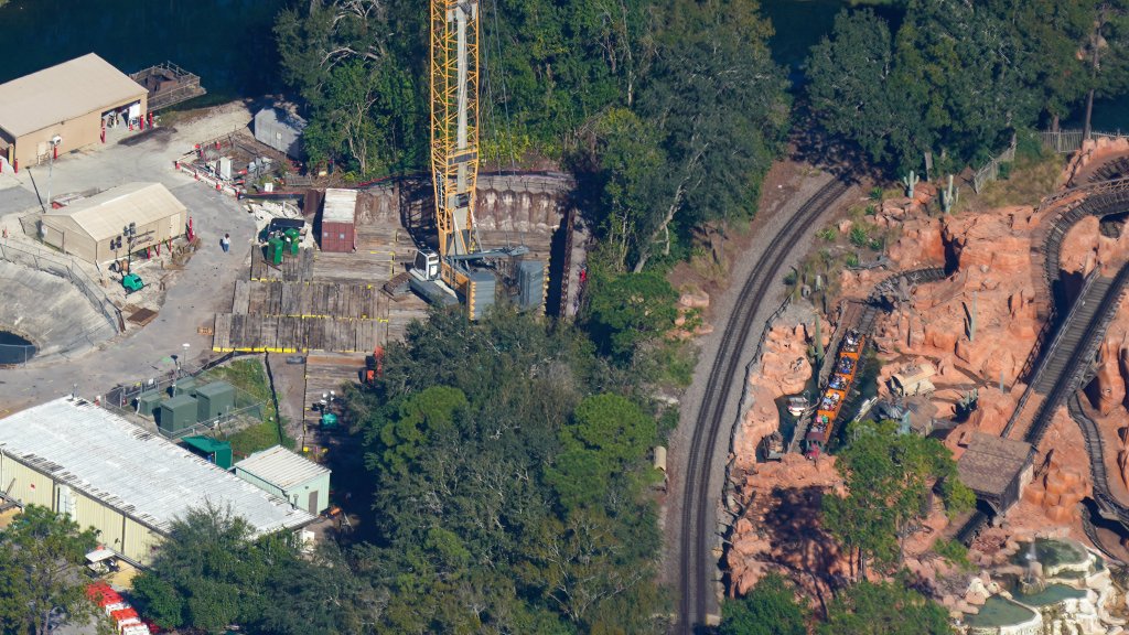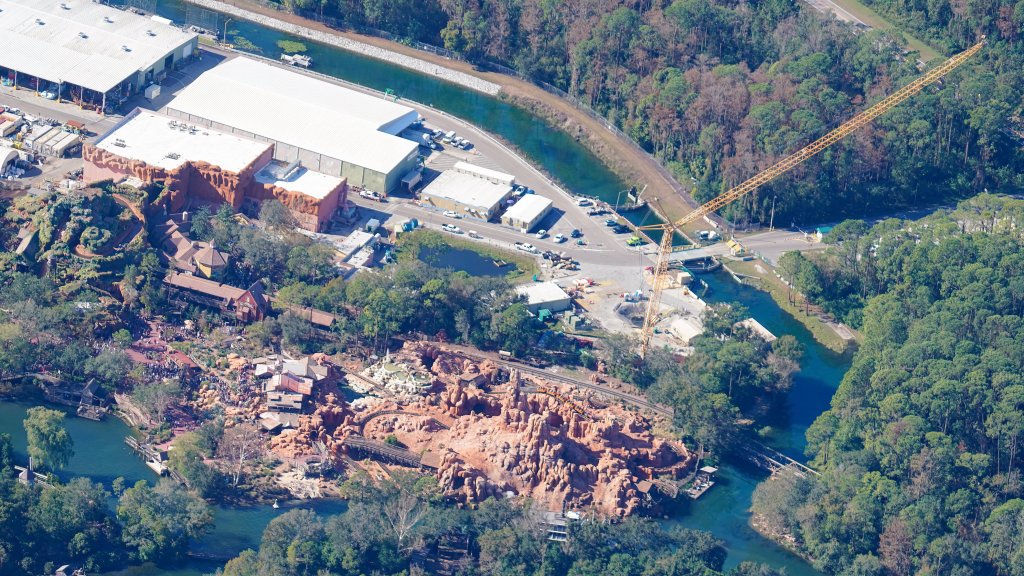 Approximately 17 hours ago, X user @bioreconstruct posted a number of detailed aerial photos of a large crane staged behind Big Thunder Mountain Railroad (BTMR) at the Magic Kingdom.