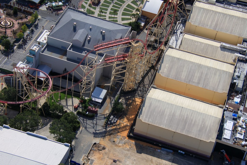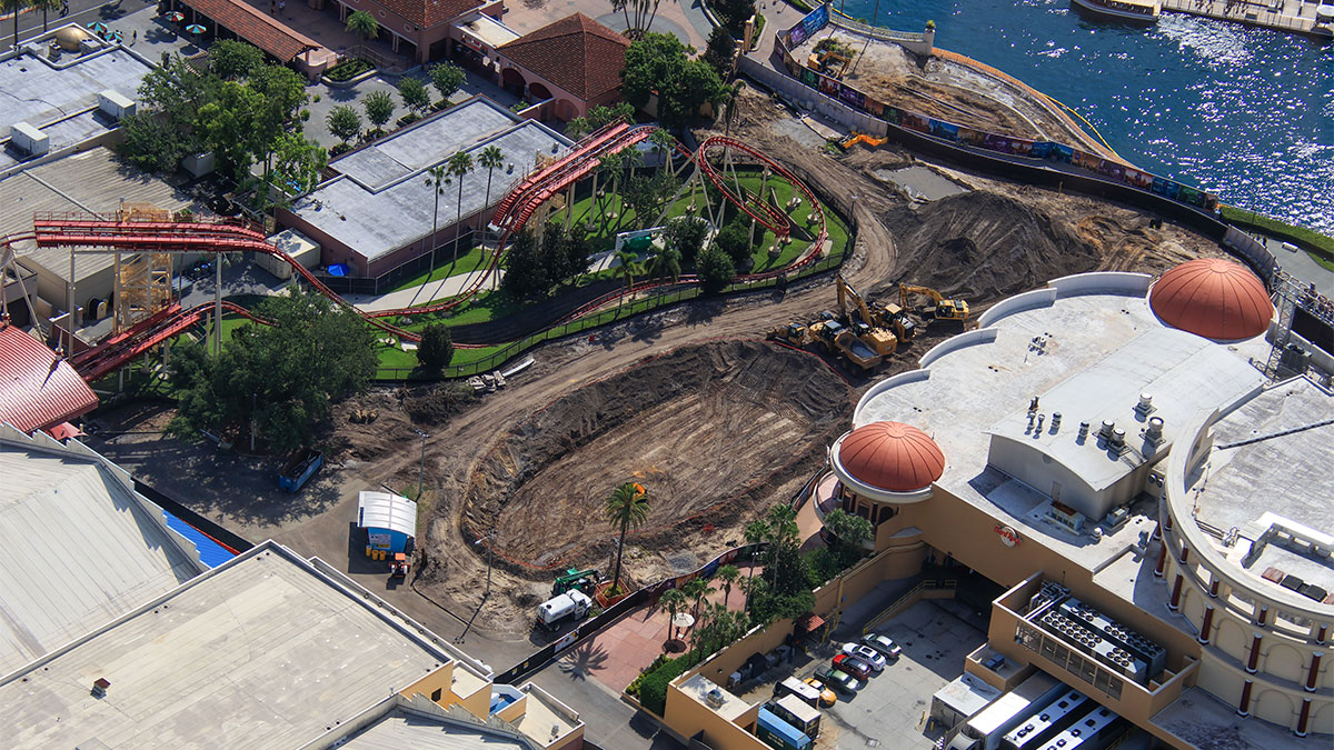 - Image #4, #5: Aerial photos of site preparation for the attraction that replaces HRRR.
