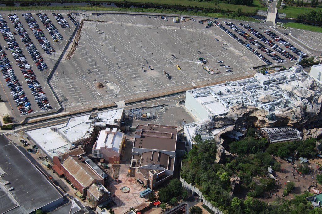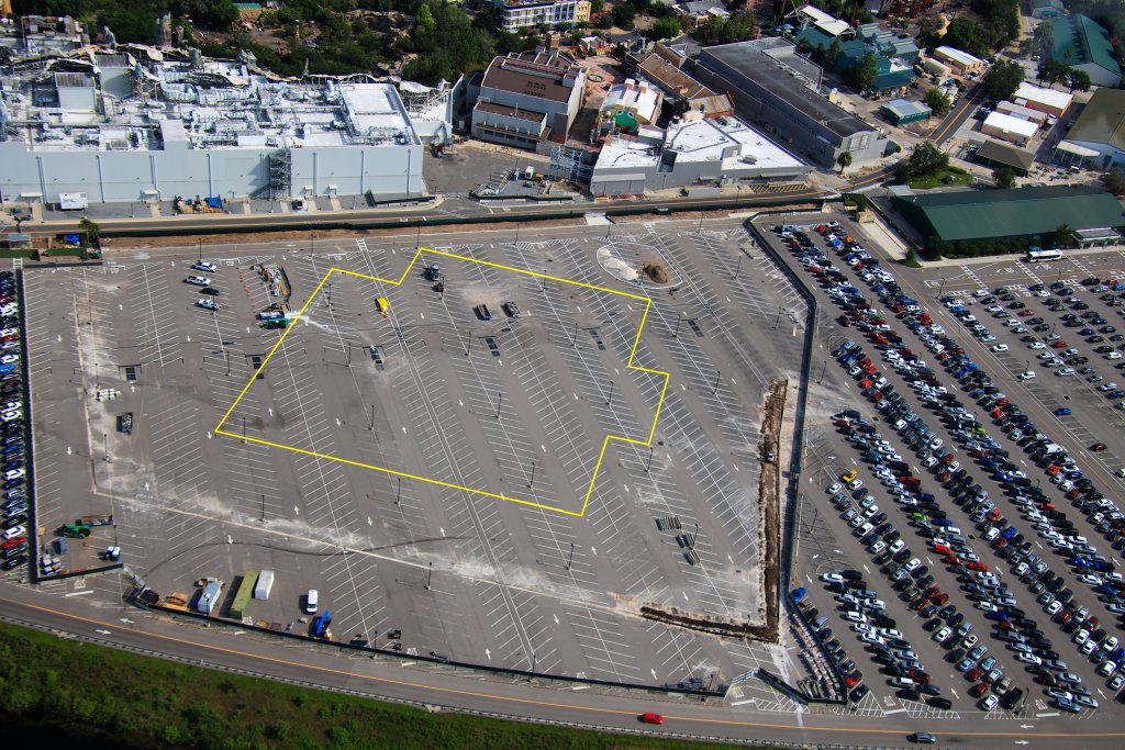 - Image #6, #7: Aerial photos of the upcoming show building location for the Monsters Inc roller coaster at Hollywood Studios.