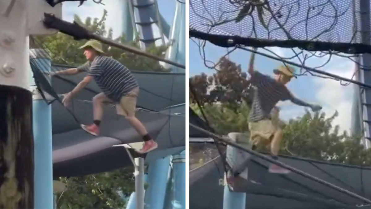 Please do not attempt this. Watch a guest climb on the safety net of Manta at SeaWorld Orlando in the 30-second video below.