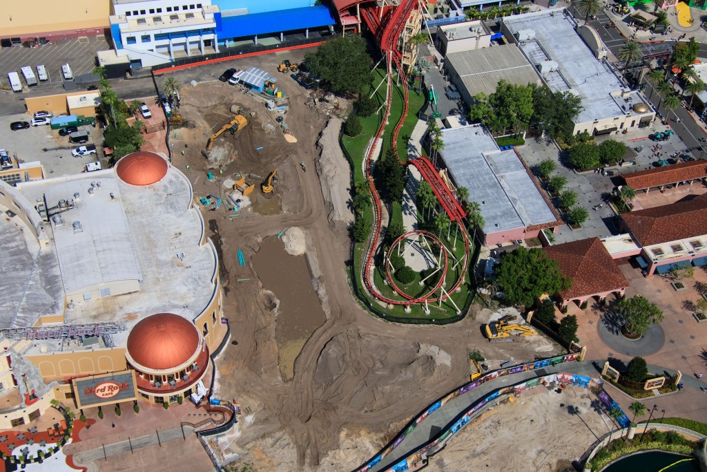 - Image #1: Aerial overview of a work site for the attraction replacing HRRR.