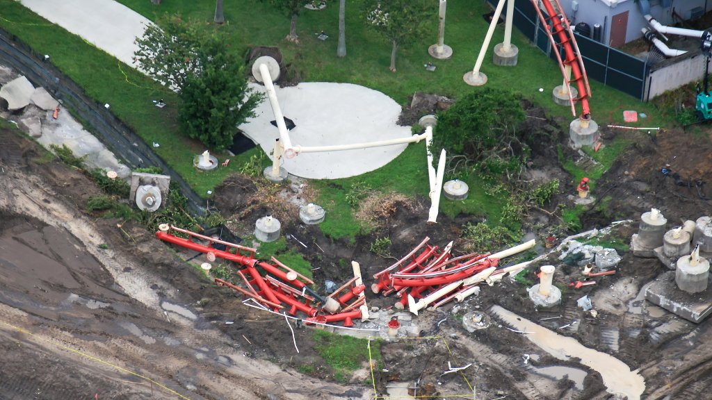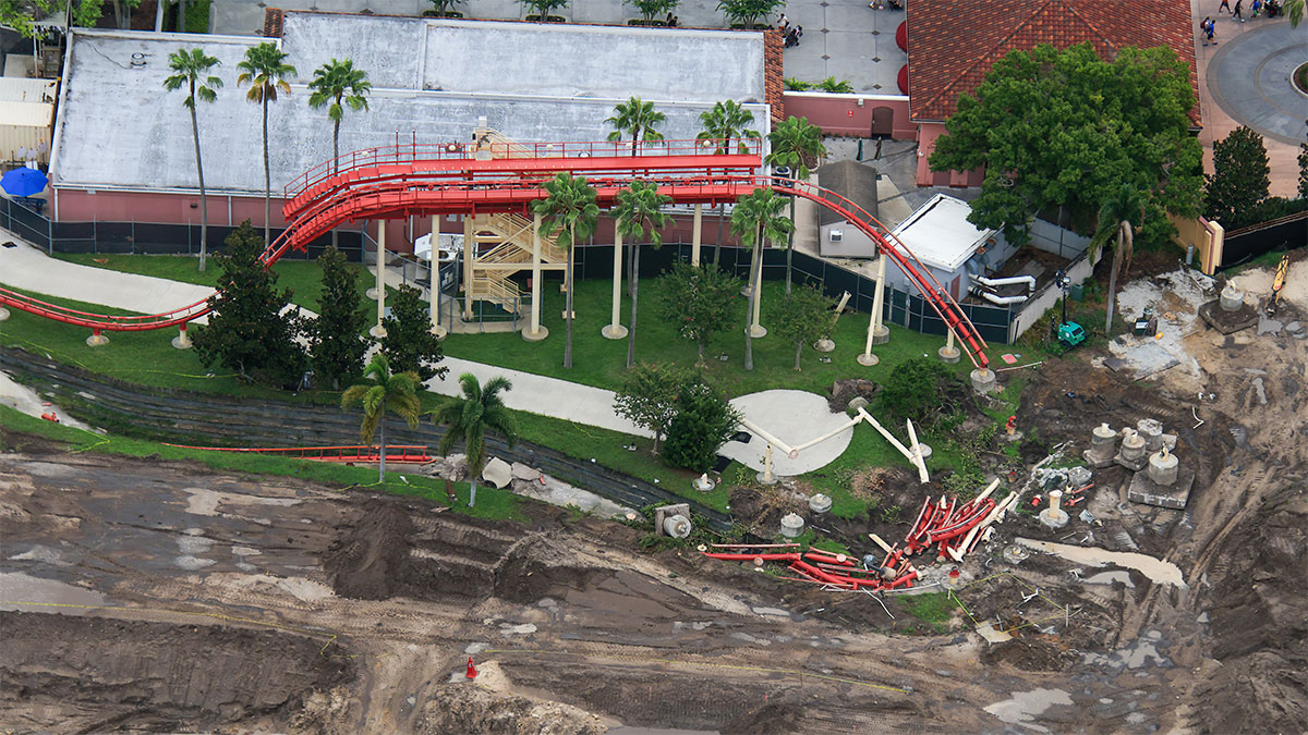 - Image #3, #4: Aerial photos of the demolition of HRRR. The lowest track of the ride is still in place.