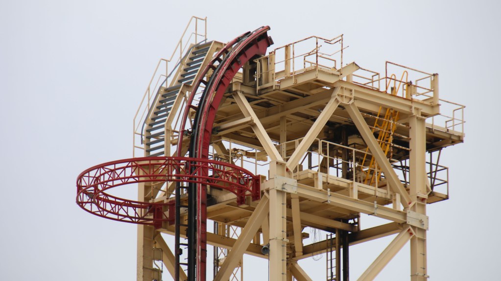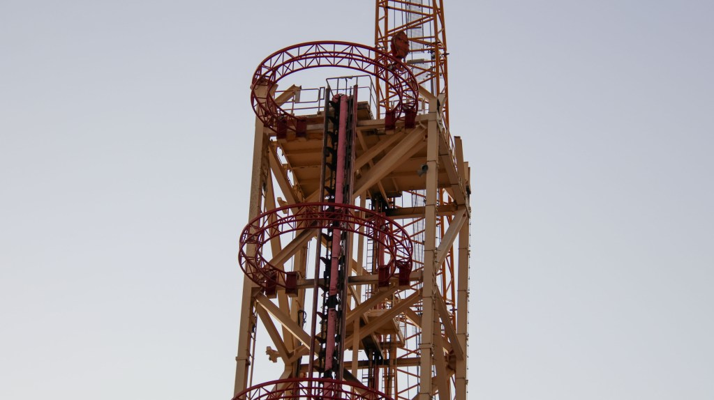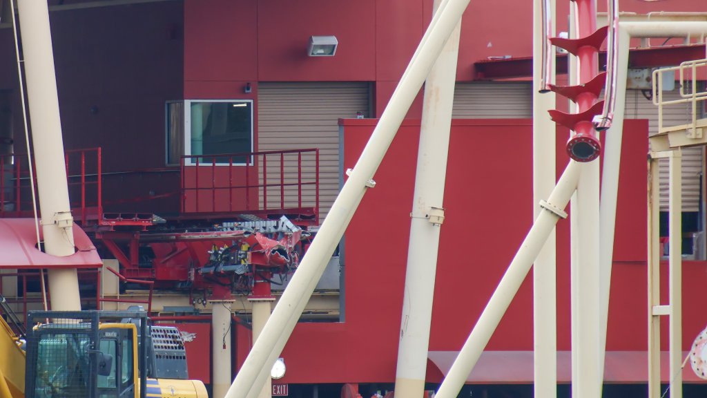 - Image #1: Very tall photo of the current demolition of HRRR. Lowest section of the big drop removed today, as well as most of the remaining support structure of the non-inverted loop.
