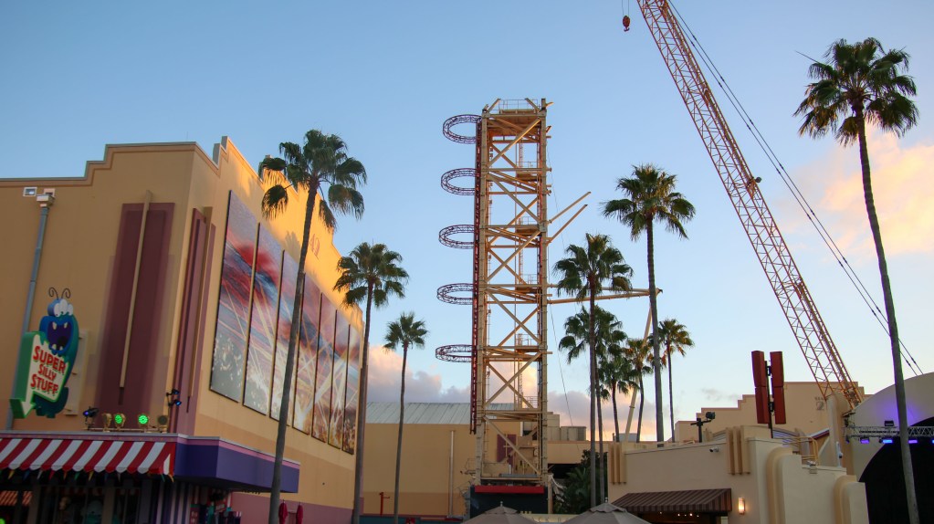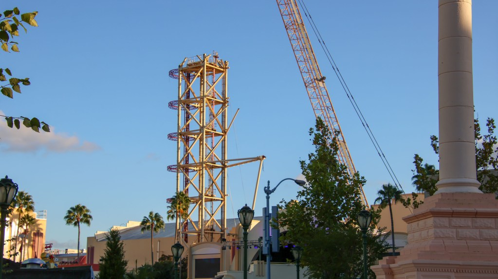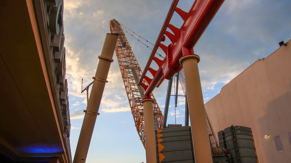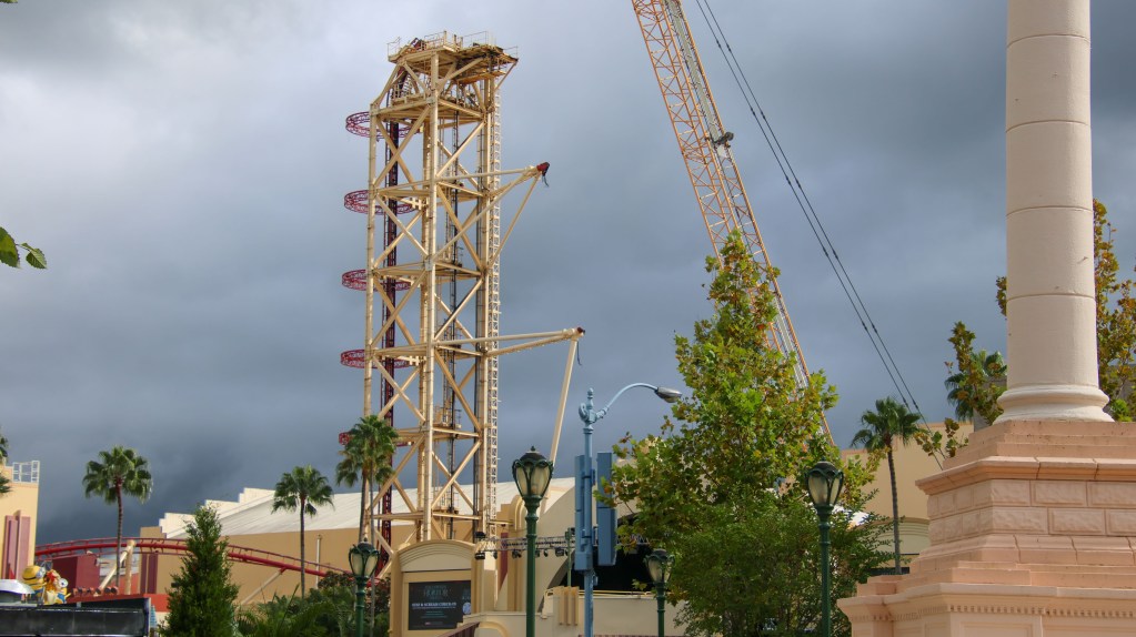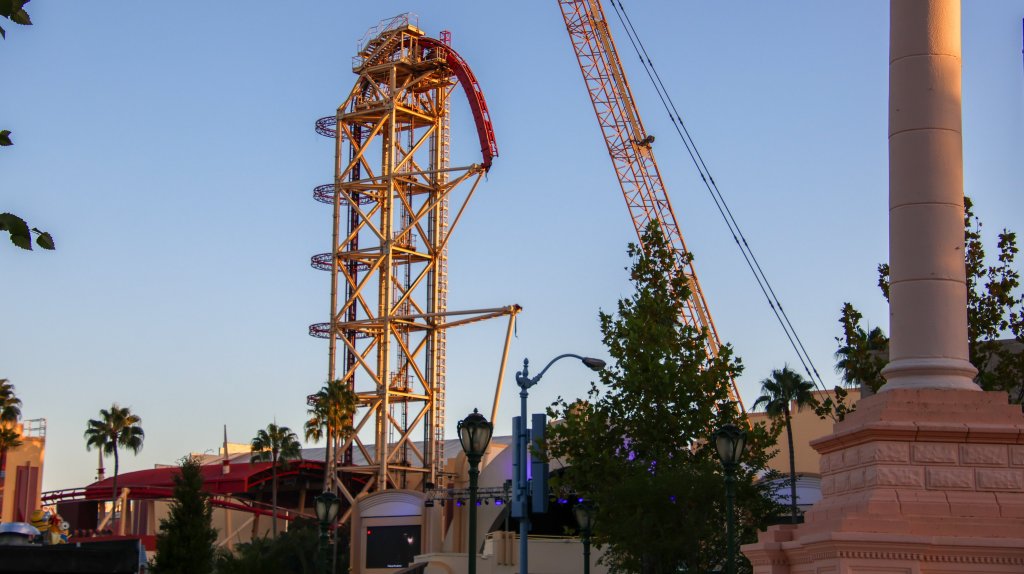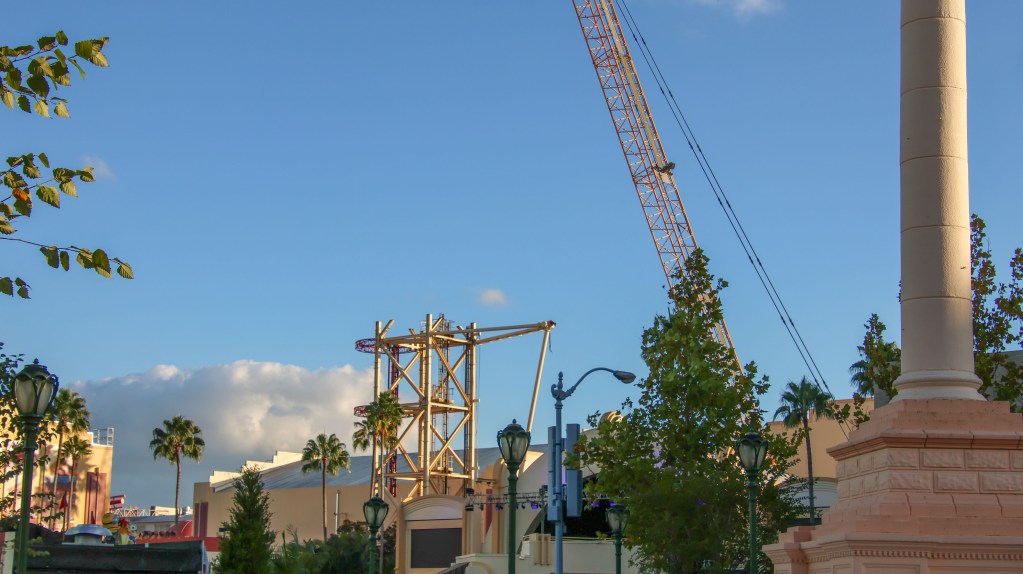 - Image #1: Crane moved closer to the Hollywood Rip Ride Rockit tower today. Crossing the [Halloween Horror Nights] access to soundstage houses.