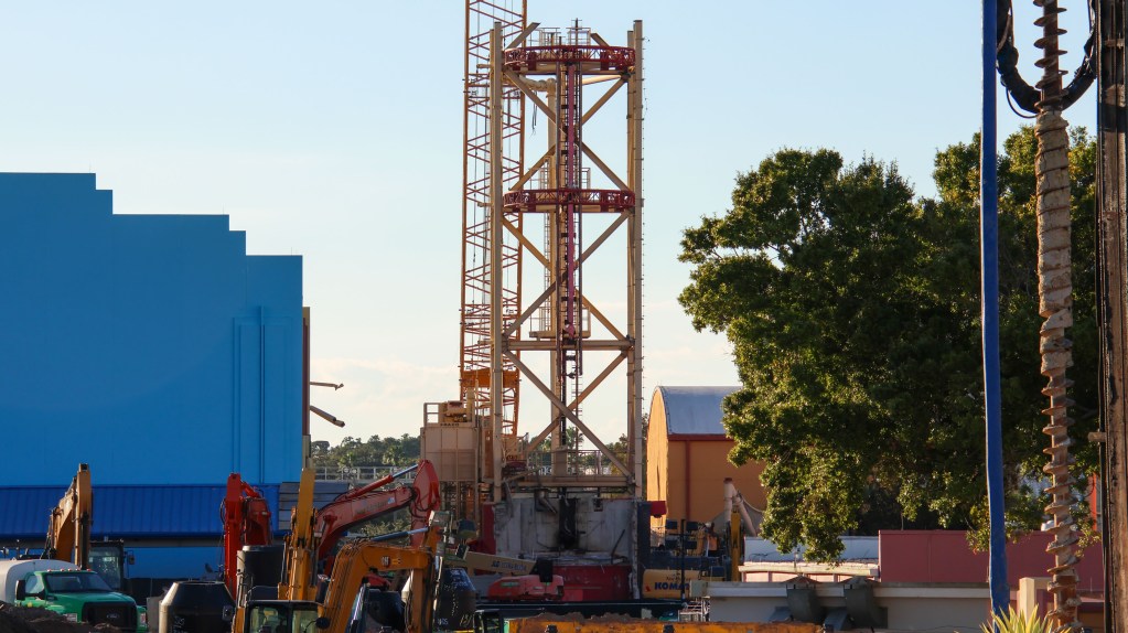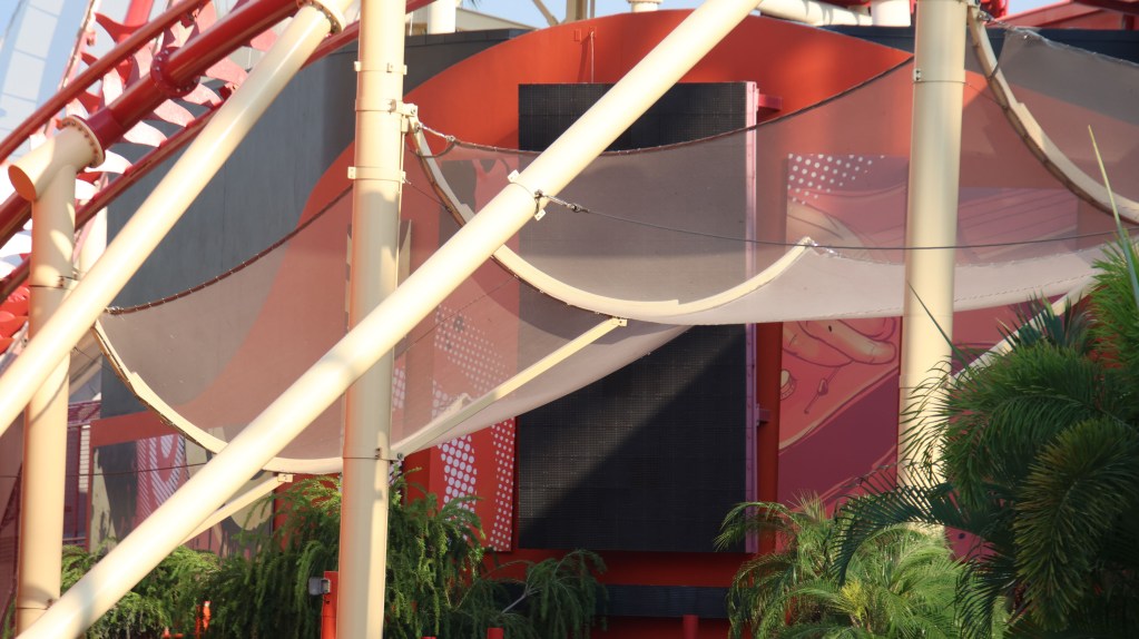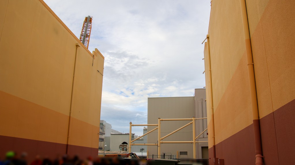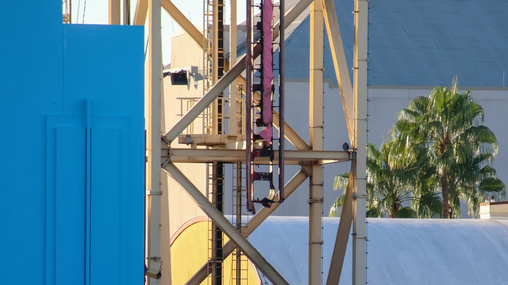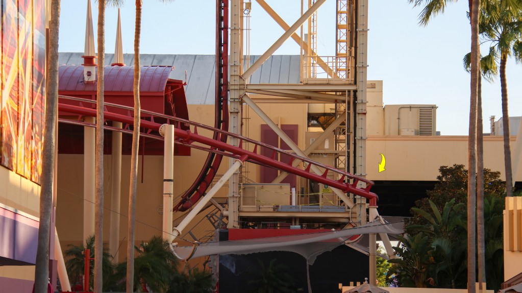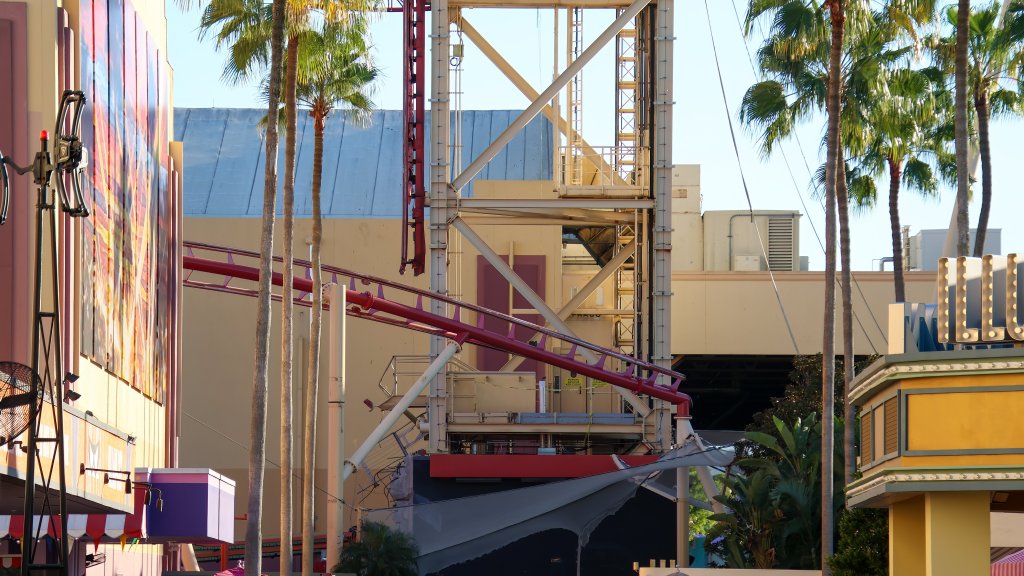- Image #1: A look at where track was cut today at the Hollywood Rip Ride Rockit tower. The chain run was also covered. The covering can be seen drawn closed at bottom.