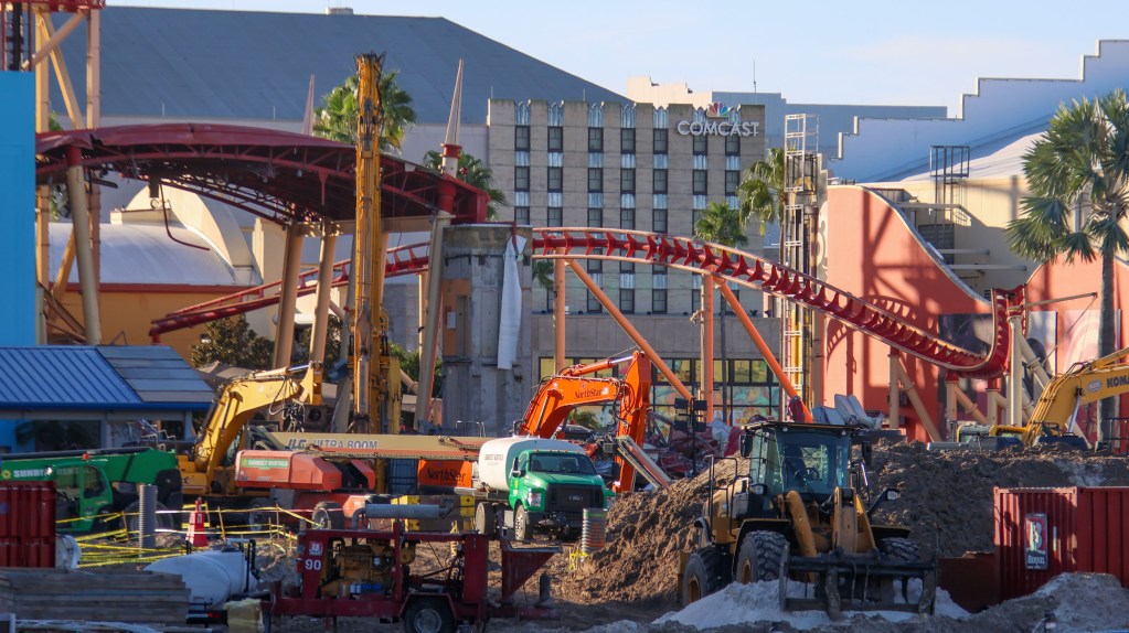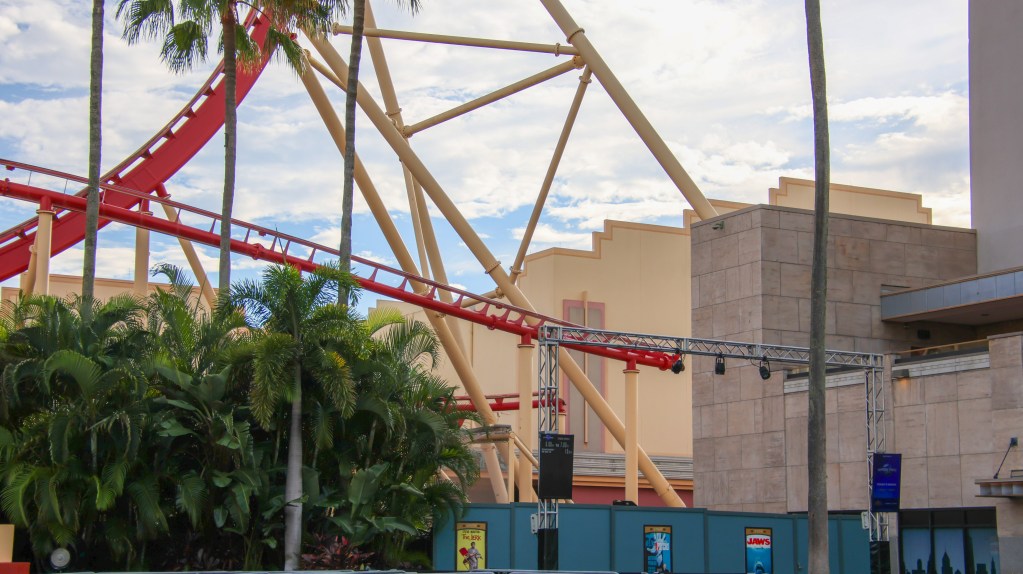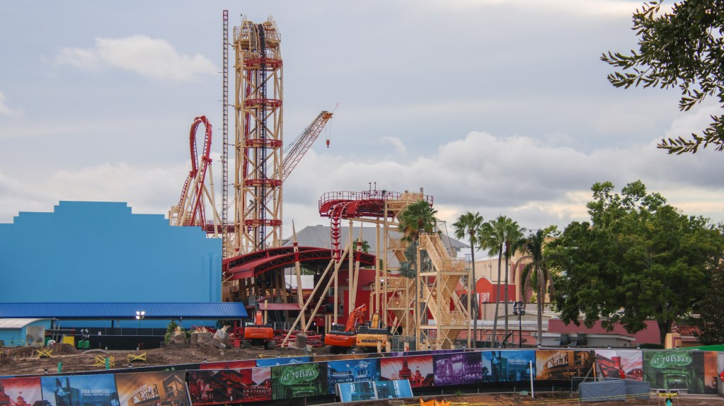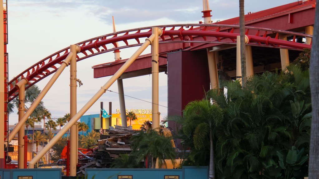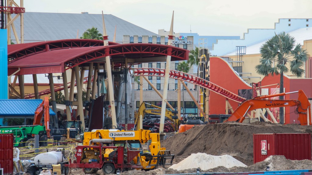- Image #1: It’s now possible to spot VelociCoaster from inside Universal Studios Florida. Demolition of HRRR at left.