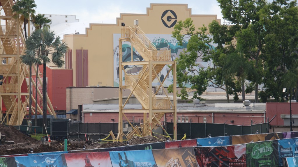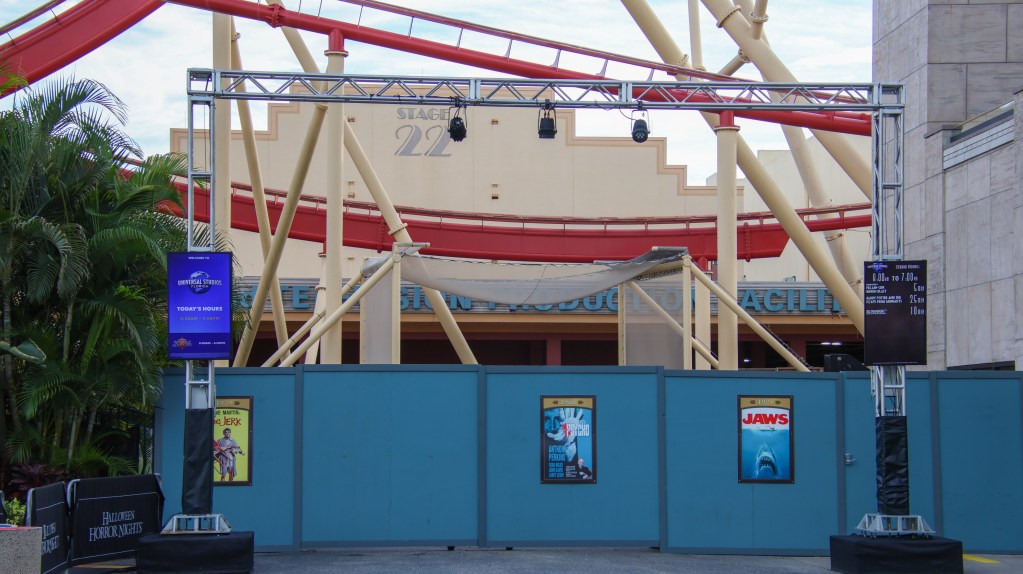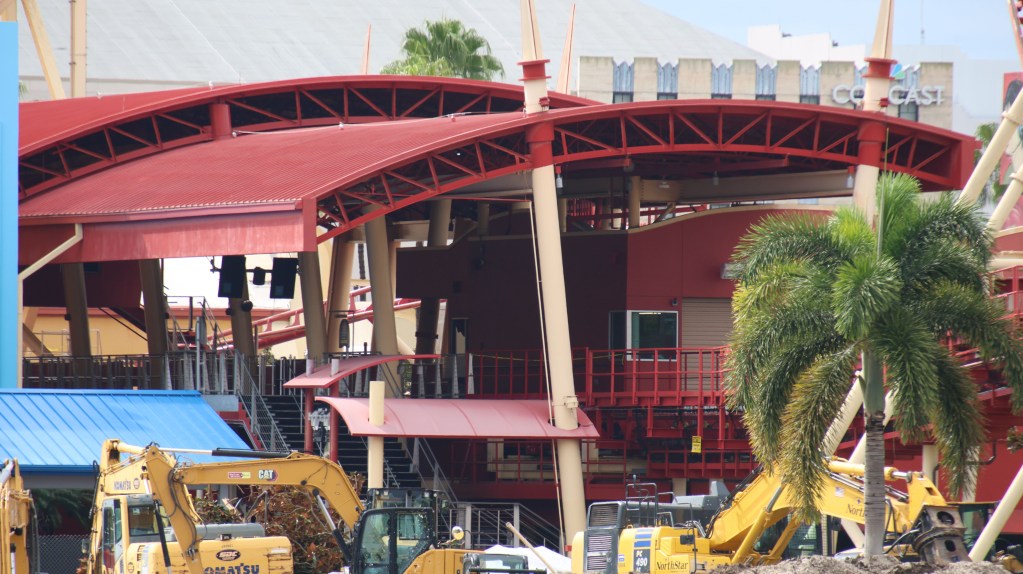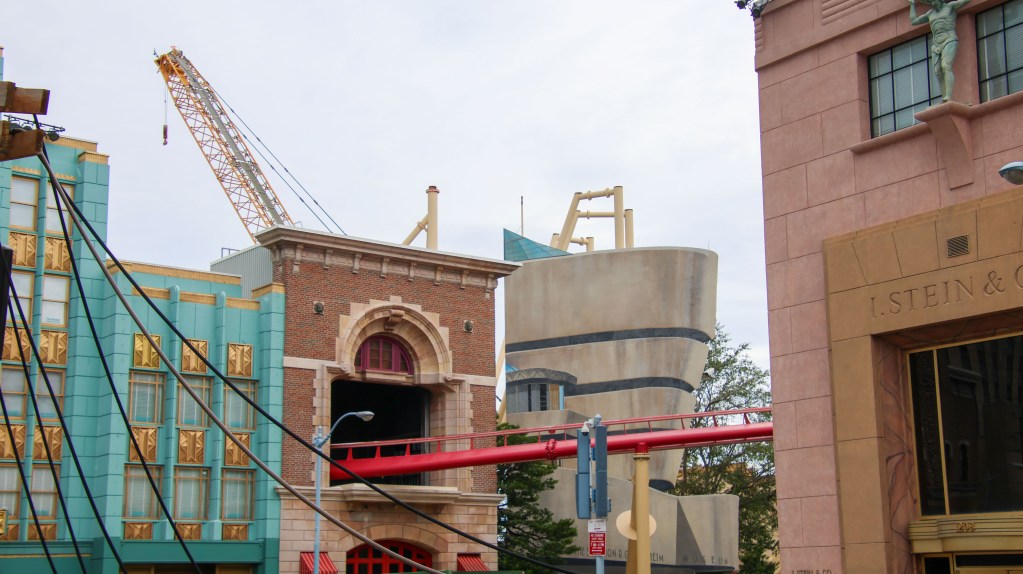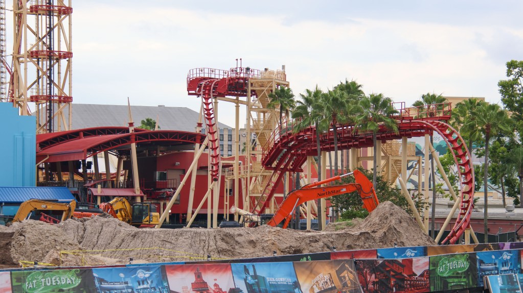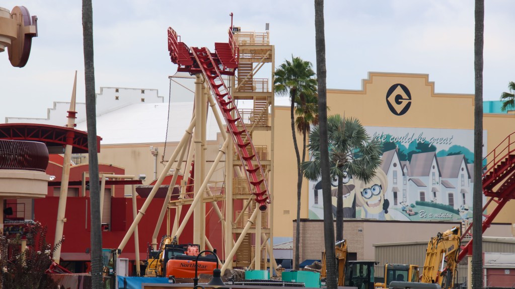 - Image #1: It’s now possible to spot VelociCoaster from inside Universal Studios Florida. Demolition of HRRR at left.