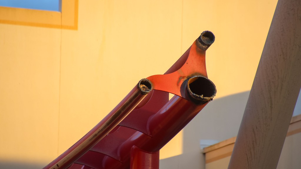 - Image #4, #5: Trim brake cabling severed in the demolition of the big drop of HRRR.