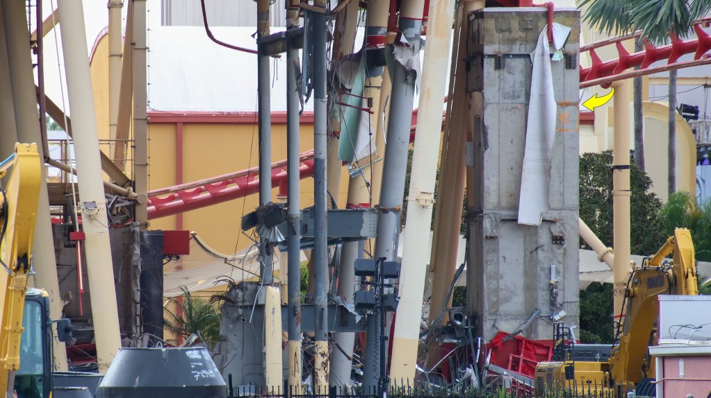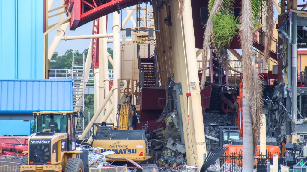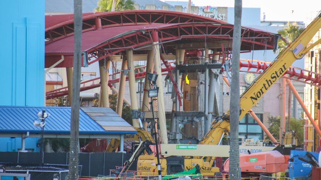 - Image #2: Current demolition of the Hollywood Rip Ride Rockit lift tower.