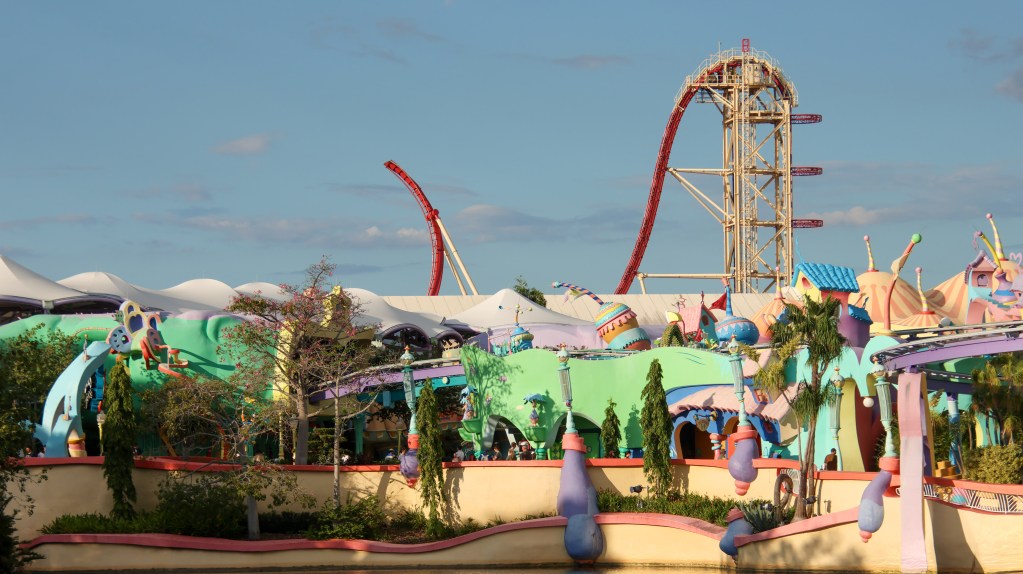 - Image #6, #7: Seuss Landing can be seen from Universal Studios Florida. View previously blocked by the HRRR Tower.