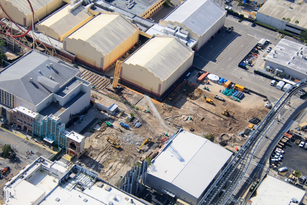 Approximately 17 hours ago, X user @bioreconstruct posted a number of new and detailed aerial photos which show the current progress of site preparation for the attraction replacing Hollywood Rip Ride Rockit (HRRR) at Universal Studios Florida.