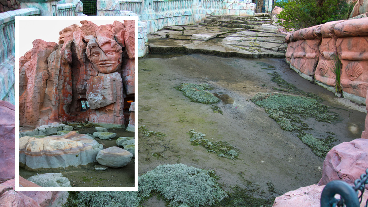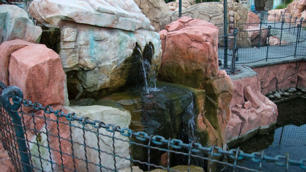 Update: The photos below show water in The Lost Continent is flowing once again. Waterfall is also flowing again: