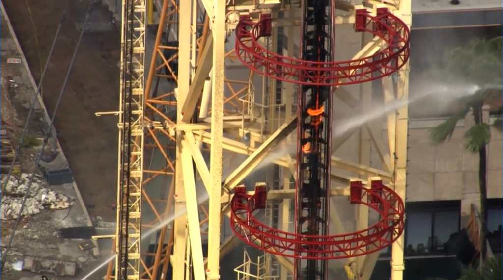The Orlando Fire Department confirmed (via WESH 2 NEWS) firefighters are “working on a small active fire on the tracks of a closed coaster.”