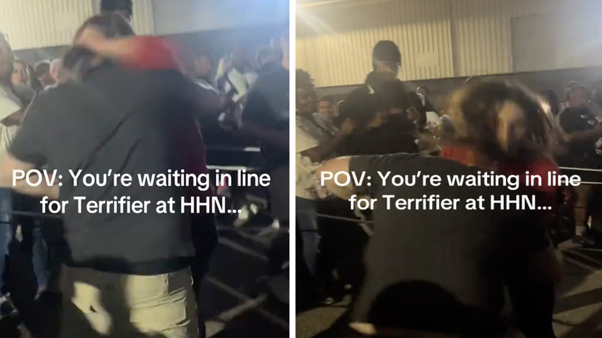 A fight involving multiple guests in the queue of the Terrifier haunted house at Halloween Horror Nights 34 (HHN 34) at Universal Studios Florida was caught on camera and posted on TikTok.