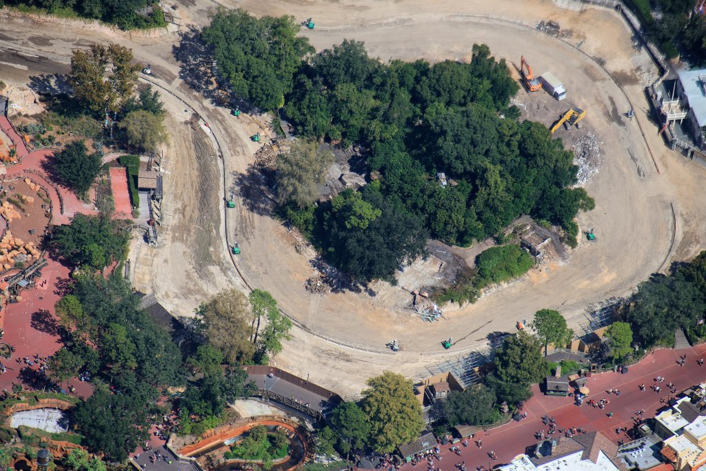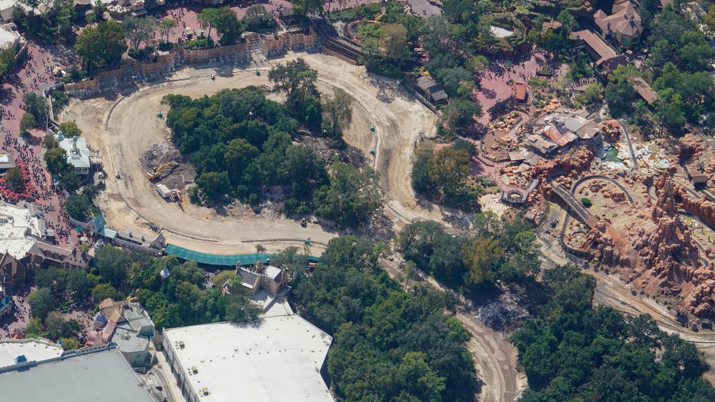 - Image #3: Aerial photo of the Piston Peak National Park work site relative to Big Thunder Mountain Railroad, Tiana’s Bayou Adventure, and Haunted Mansion.