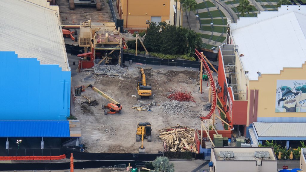 Not a lot remains! Approximately 15 hours ago, X user @bioreconstruct posted a number of new and detailed aerial photos which show the demolition progress of Hollywood Rip Ride Rockit (HRRR) at Universal Studios Florida.