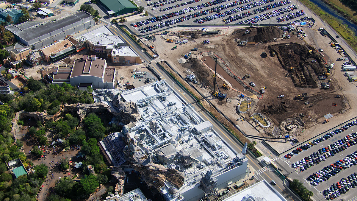 - Image #2, #3: Aerial photos of the Monstropolis roller coaster construction site at Hollywood Studios.