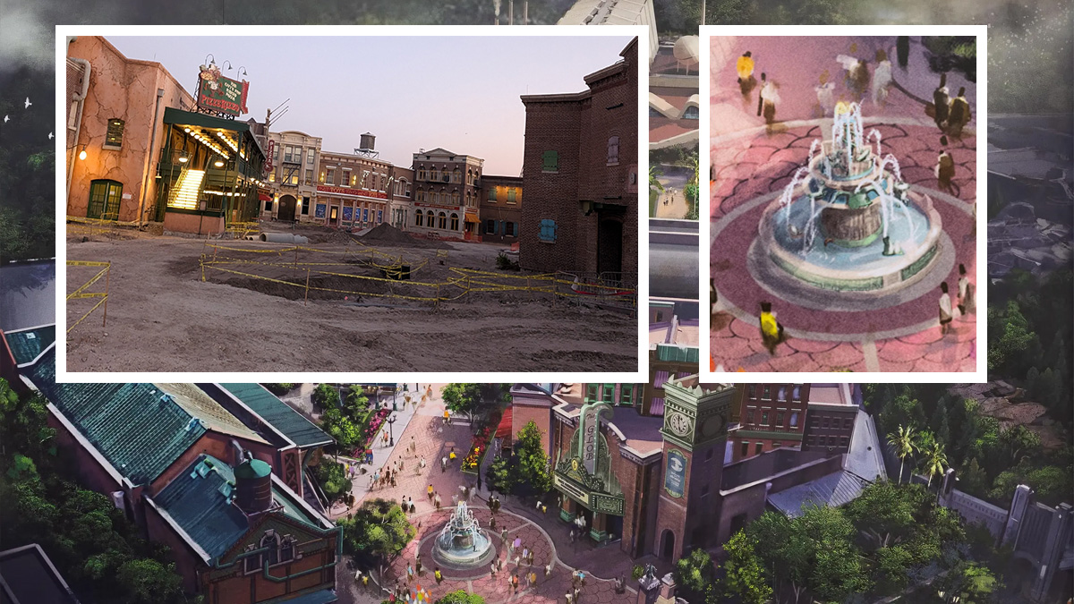 The area is in the same location as the iconic Statue of Liberty Piggy fountain, which is why we can assume this is where the Monstropolis Fountain (shown in the concept art below)will be.