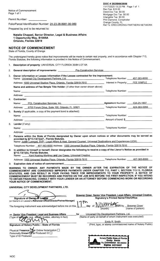 Stay tuned for further updates. A new Notice of Commencement (NOC/permit) for Universal’s Islands of Adventure has been filed by Universal Orlando.