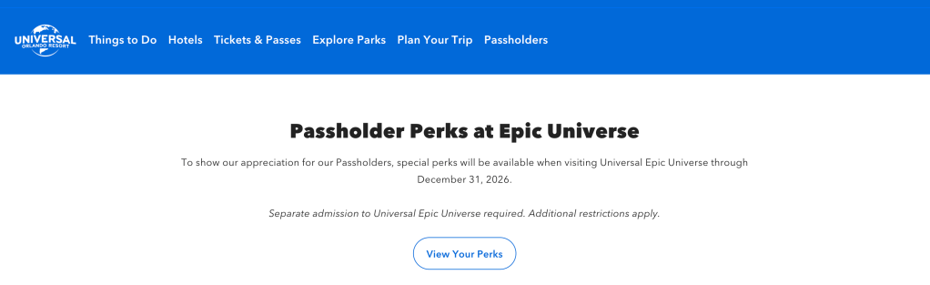 “Annual Passholder perks for Epic Universe, like parking benefits, have been extended through December 2026.”