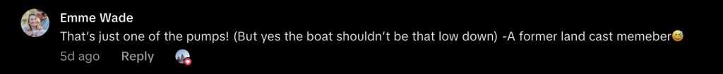 “That’s just one of the pumps (but yes the boat shouldn’t be that low down) – a former land cast member.”