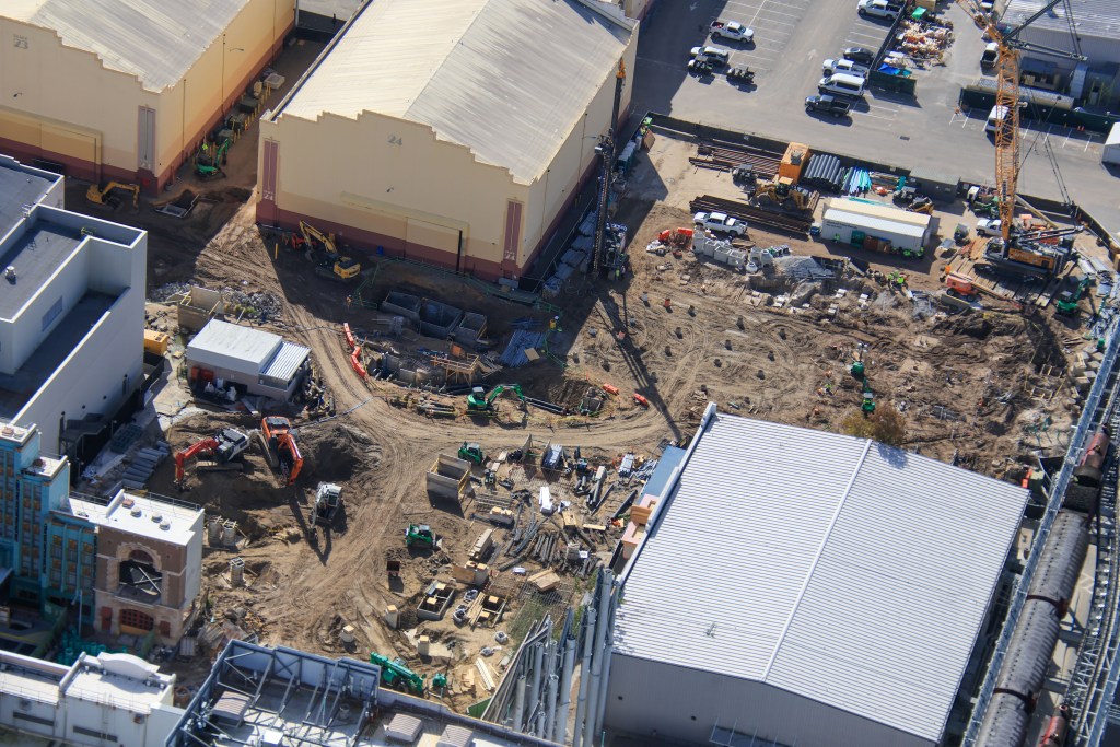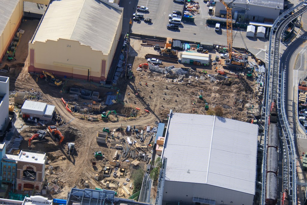 Approximately 24 hours ago, X user @bioreconstruct posted a number of new and detailed aerial photos which show the construction progress of the new and yet-to-be announced roller coaster at Universal Studios Florida (USF).