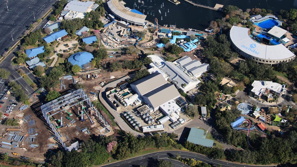 - Image #1: Aerial photo shows construction of SEAQuest’s show building in SeaWorld Orlando.