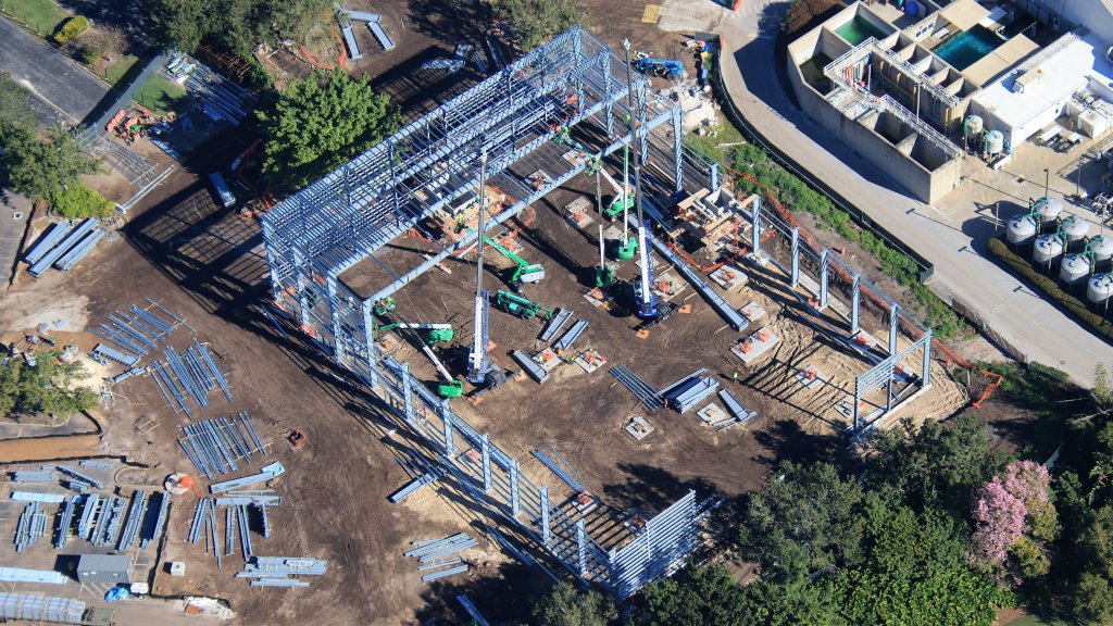- Image #3: Aerial look at the SEAQuest’s show building’s steel frame in SeaWorld Orlando.