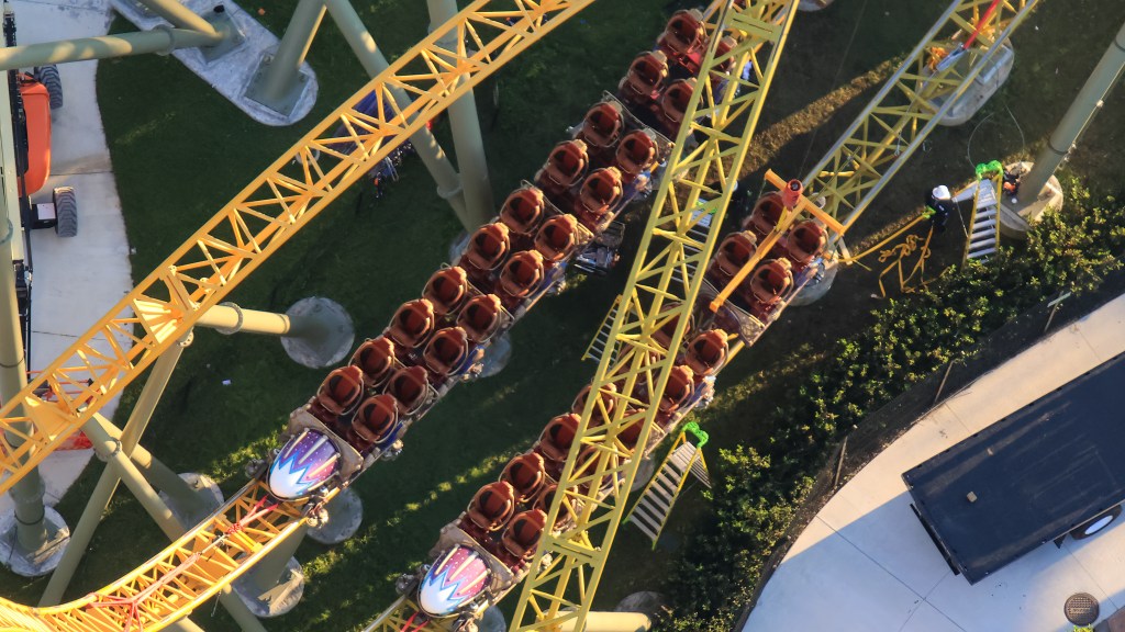 - Image #5, #6, #7: Aerial look at Stardust Racers trains that valleyed this past Sunday at Univerasl’s Epic Universe.